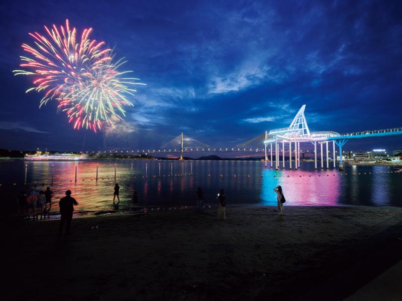 Opened in 1962, Yudal Beach has long been a favorite sandy retreat for both Mokpo residents and visitors. It is especially popular at night, when crowds gather on the Skywalk to admire the impressive Mokpo Bridge and the shimmering sea.