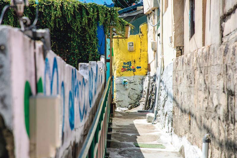 The Poetry and Painting Alley is the product of collaborative work by Mokpo’s poets, artists, and residents. Starting in 2015, they transformed what was once an ordinary harbor village into vibrant streets filled with colorful artwork and evocative poetry, animated by signs of everyday life such as flower pots or laundry fluttering in the breeze.