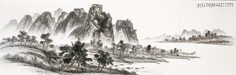 “Landscape” (Gangsan mujindo). Heo Geon. Early 1960s. Ink and color on paper. 101 × 285 cm.