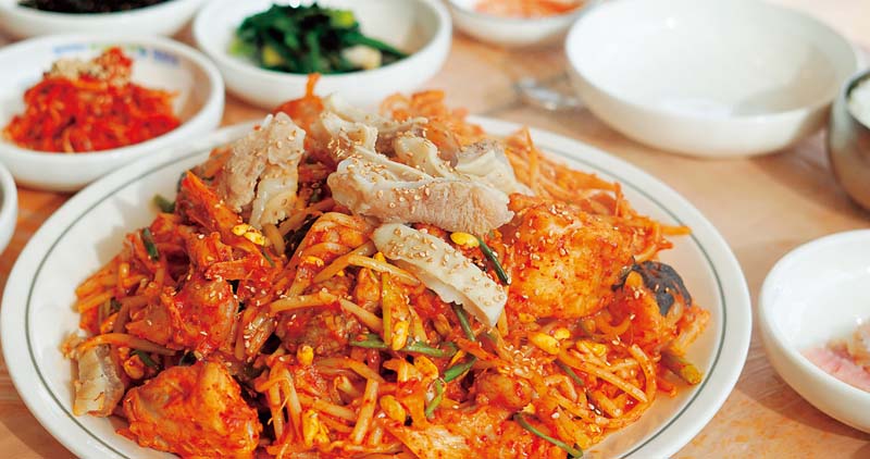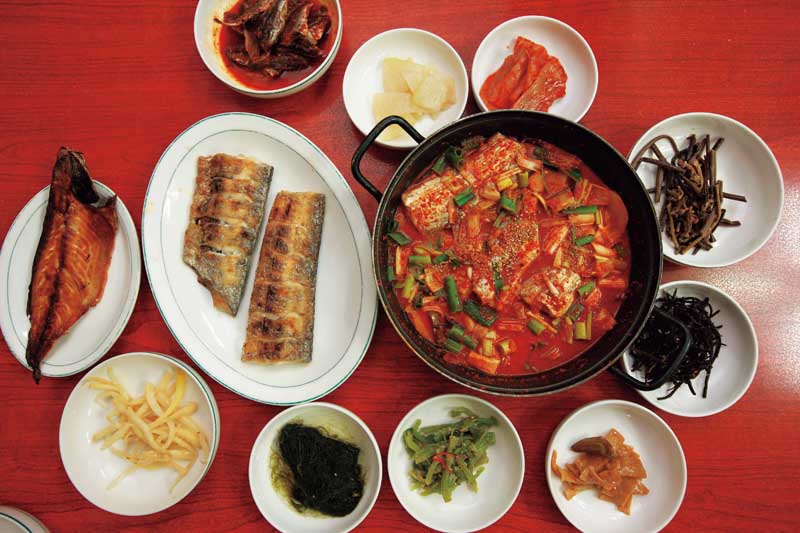 Another very popular dish is gesal bibimbap, rice mixed with freshly shelled blue crab meat and a flavorful sauce. At Jangteo Sikdang, where it’s the house specialty, there’s always a crowd. Local chefs, famed for their masterful touch with food, know how to bring out the best in silver pomfret, herring, hairtail, and other varieties of fish, whether simmered as jorim or deep-fried as twigim. As for rockfish, while it is mostly eaten raw elsewhere in Korea, in Mokpo it is prepared as ureok ganguk, a soup made from the semi-dried variety. It is considered one of the best hangover cures alongside yeonpotang.