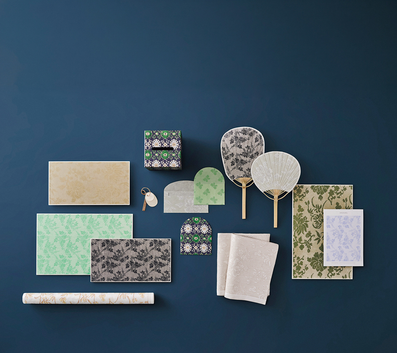 Hanji products created through a collaboration between ONJIUM and the graphic design firm studio fnt. Traditional Korean textile motifs were first transformed into digital patterns and then printed onto hanji using a silkscreen technique.