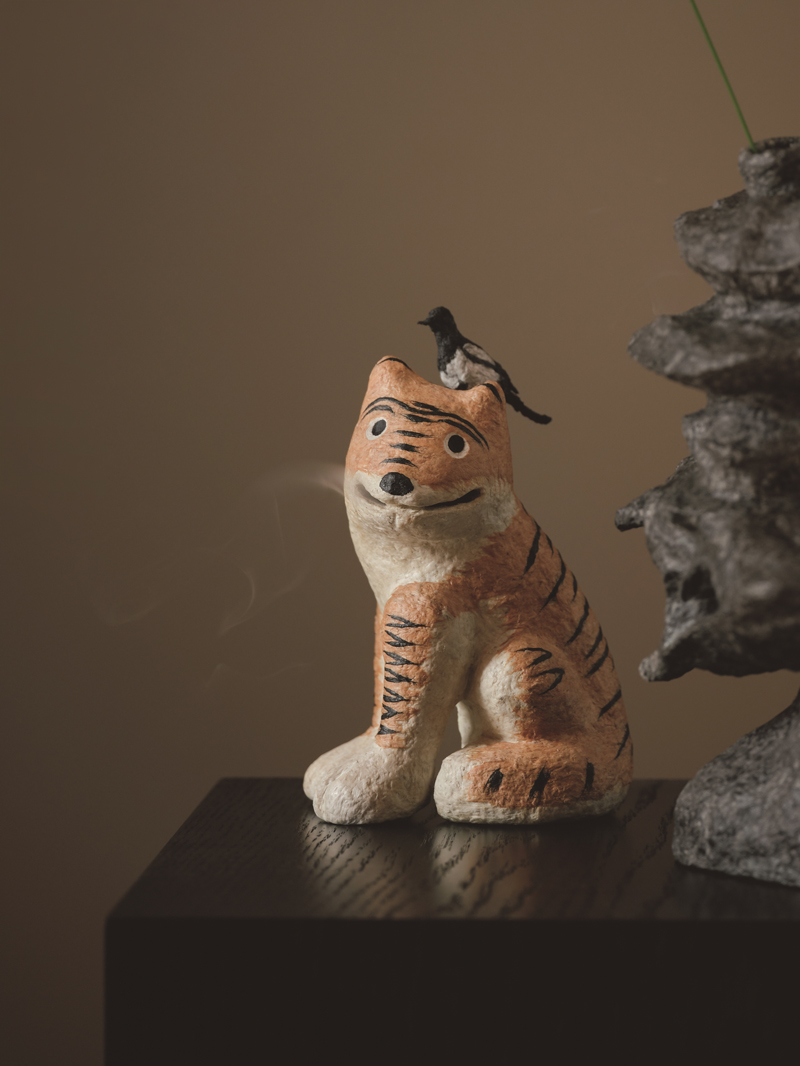 Presented in the YÉOL Foundation’s Nature, As It Is exhibition, “The Magpie and Tiger Incense Burner” is a playful piece by master artisan Park Gap-soon. Inspired by the classic magpie and tiger motifs of traditional Korean folk paintings, the burner is cleverly designed to release incense smoke directly from the tiger’s mouth.