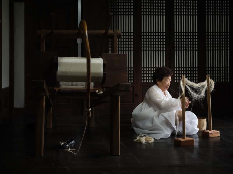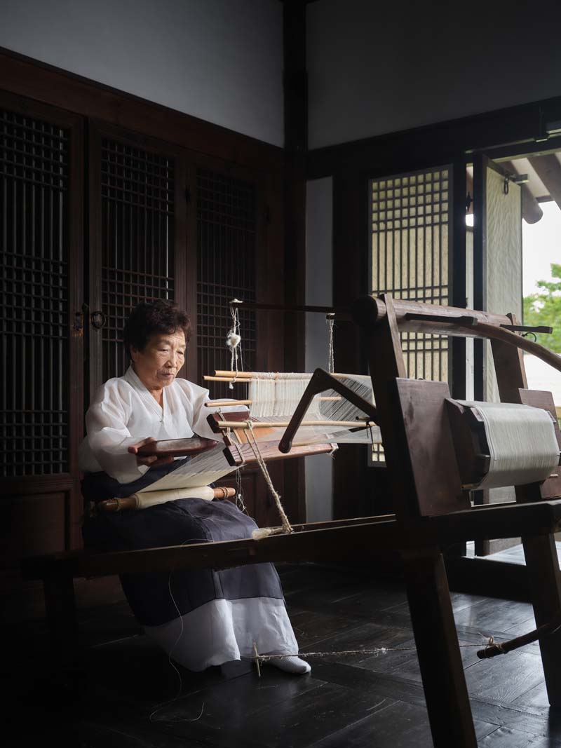 Now in her eighties, Master Bang continues to work alongside other artisans. She beams as she notes that both her daughter and daughter-in-law have become certified trainees, ensuring that the craft of weaving Hansan ramie will endure into the next generation.