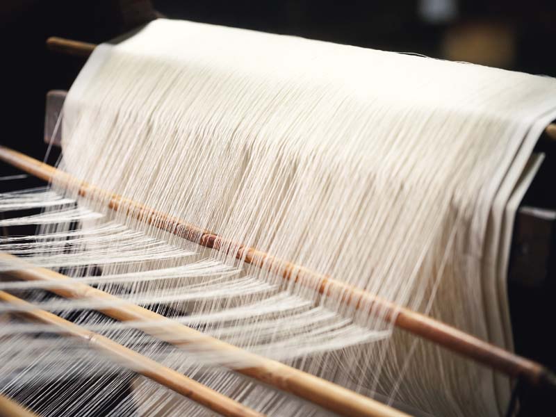 Ramie threads set on the loom. Hansan ramie is prized for its even, uniform texture, giving it a more refined appearance than ramie from other regions.