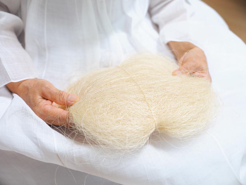 “Ramie thread snaps easily when dry. That’s why we weave in sweltering heat with the doors shut tight, working drenched in sweat. These days, humidifiers make it easier to maintain proper moisture levels, so the work is less arduous.”