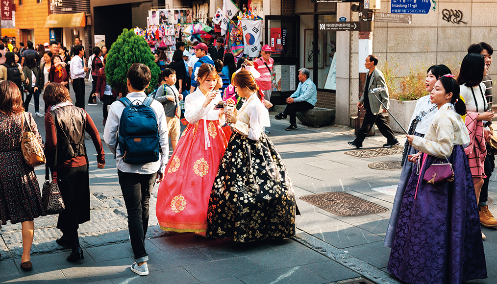 어디서 축제가 벌어진 것일까? 요즘 북촌 거리나 경복궁 부근 등 서울의 구도심 에서는 한복을 차려 입은 젊은이들을 자주 마주친다. 어디선가 결혼식을 끝내고 나오는 하객들일까? 한복은 분명 한국인의 오래된 전통 의상이다. 그러나 19세기 말 이 나라의 개항으로 밀려온 외래문화는 차츰 전통 한복을 밀어냈다. 1960년대 까지만 해도 서울 거리에서 한복 차림의 시민들이 자주 눈에 띄었다. 그러나 1980년대부터 직물의 대량생산, 보급과 더불어 패션산업이 활성화 되면서 서양식 정장이나 평상복이 대세가 되었다. 한복은 정월 초하루, 한가위 같은 명절이나 결혼식에만 입는 예외적 의상으로 변했다.