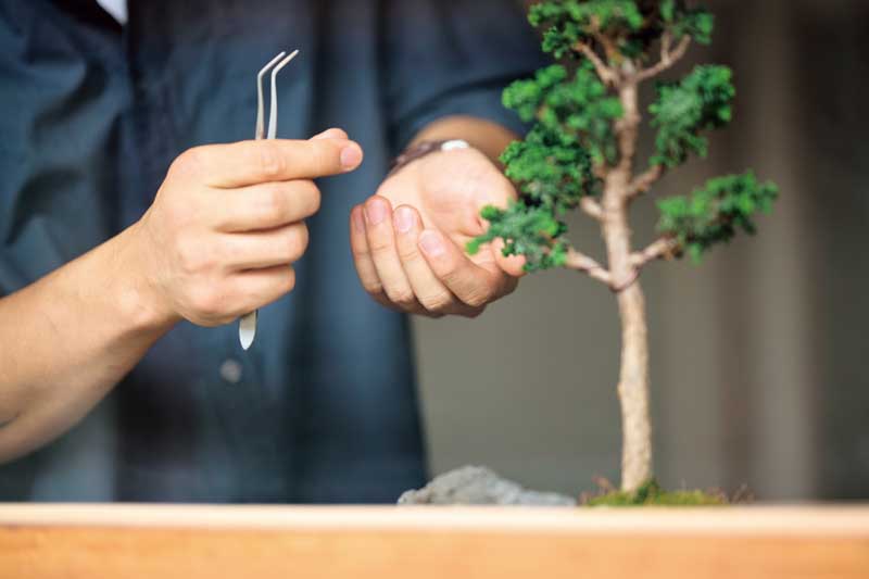 “Growing a plant in a pot is artificial to begin with. Once a plant is potted, would it be right to just leave it as is? Plants in a confined environment need proper care. For example, pruning them just enough, or wiring the branches so they don’t compete for space. If you know trees, you never harm them; everything you do for them is guided by affection.”